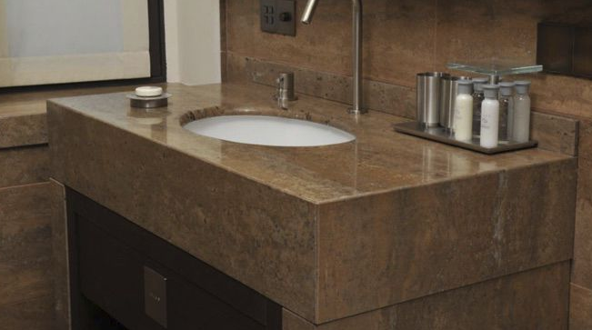 El Travertino Noce es un material de color marrón claro, resistente y adecuado para ambientes de interior. Además, Travertino Noce presenta motas y intrusiones de color beige. Este travertino utiliza en ambientes de interior.
